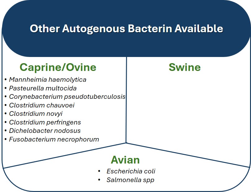 - Autogenous bacterin can be used in other herds with approval from the USDA.